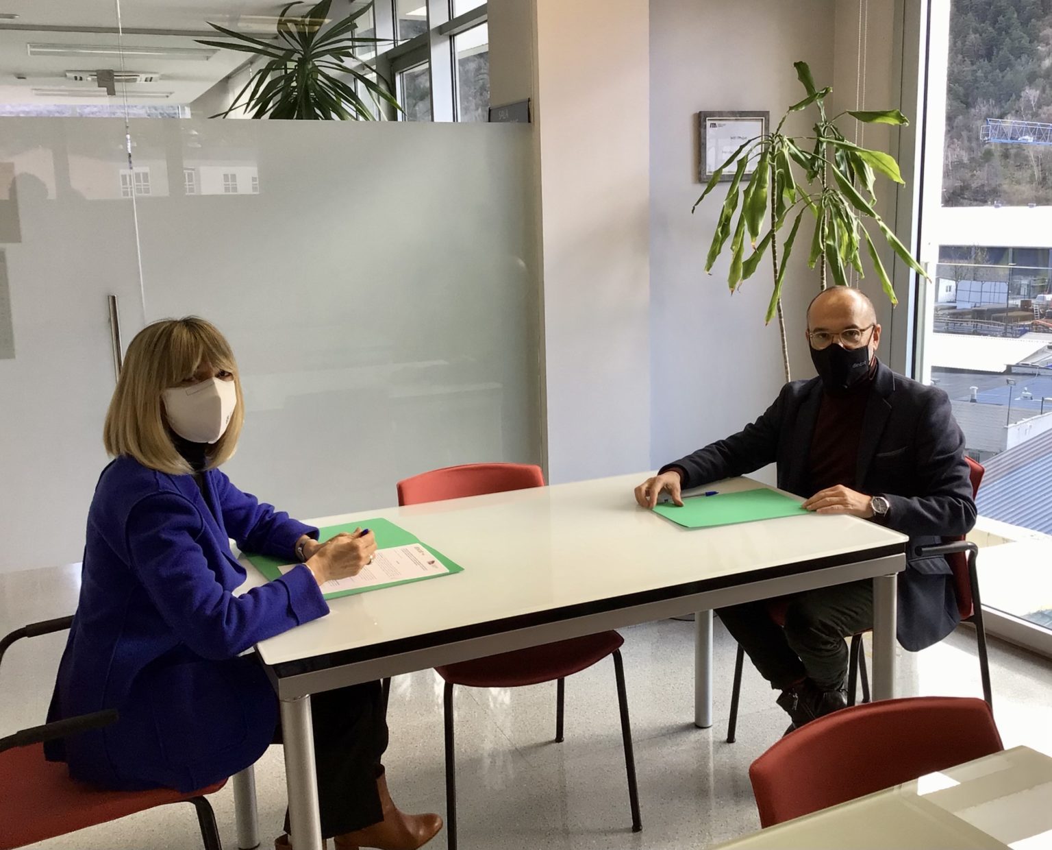 1 de febrer del 2022.– Aquest matí, Dincat i la Fundació Privada Nostra Senyora de Meritxell d’Andorra, han signat un acord de col·laboració amb l’objectiu d’intercanviar experiències, tècniques i projectes i així millorar contínuament l’atenció dedicada a les persones amb discapacitat intel·lectual. En aquest sentit, l’acord suposa un pas endavant en l’estratègia internacional de Dincat, ja que, per primera vegada, fa arribar els seus serveis al país dels Pirineus. L’acord de col·laboració, s’ha signat aquest matí per la directora general de la Fundació, Celine Mandicó, i el director de Dincat, Carles Campuzano i Canadés, ha comptat també amb la presència de la Sra. Maria Pilar Díez, presidenta del Patronat de la Fundació Privada Nostra Sra. de Meritxell. D’aquesta manera, la FPNSM es podrà beneficiar de tots els serveis que proporciona Dincat amb l’objectiu de millorar la qualitat de vida i contribuir a garantir la inclusió social i laboral digne de les persones amb discapacitat intel·lectual, així com vetllar per una vida més justa per a elles i les seves famílies. L’experiència i l’especialització de les dues entitats contribuirà a fer encara més efectiu el respecte dels drets, de la dignitat i la qualitat de vida d’aquest col·lectiu i d’aconseguir una societat més justa, equitativa i igualitària.