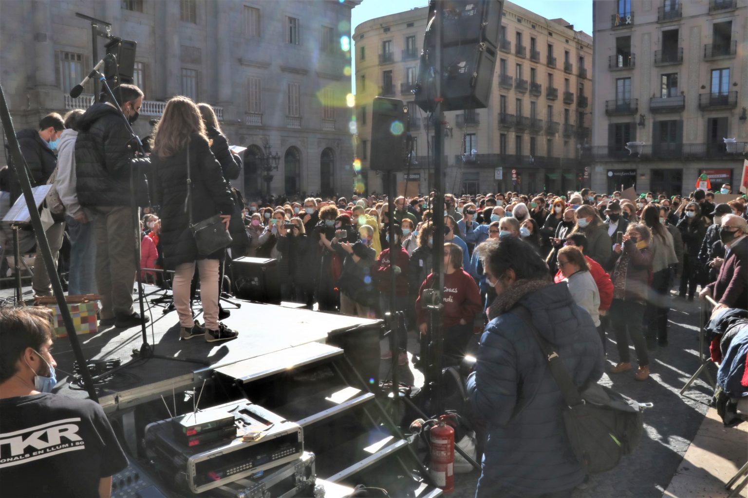 3 de desembre de 2021.- Dincat, representant del sector de la discapacitat intel·lectual a Catalunya, ha reunit a més de mil persones amb discapacitat intel·lectuals, familiars i professionals del sector aquest migdia a Plaça Sant Jaume, amb l’objectiu de denunciar les llistes d’espera a les quals han de fer front les persones amb discapacitat intel·lectual a l’hora d’accedir a un habitatge digne amb els suports necessaris i als serveis d’atenció diürna, així com reivindicar el seu dret a tenir i dur a terme un projecte de vida independent. L’acte s’ha celebrat en el marc de la campanya impulsada per Dincat, #STOPLlistesEspera.